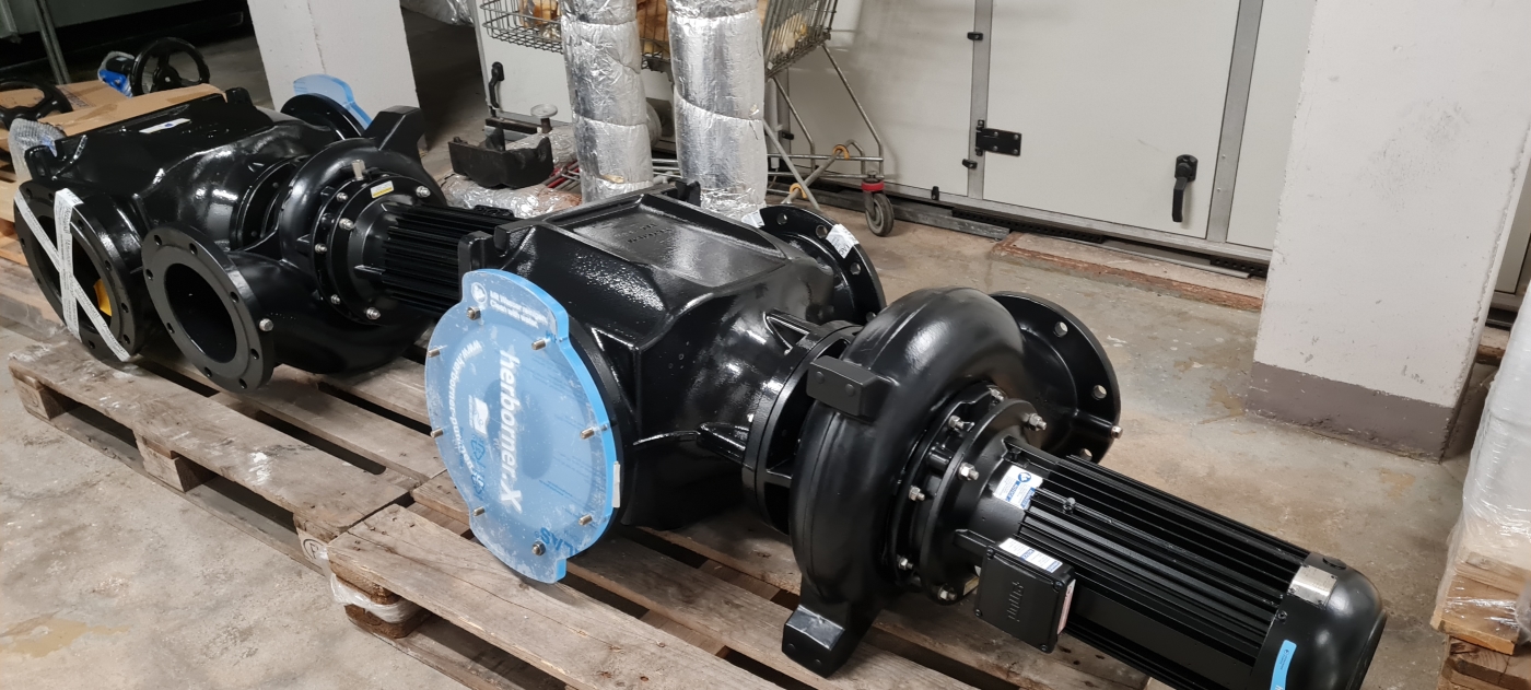 Mit Beginn der Hallenbadsaison wurden vier neue Hocheffizienzpumpen im Hallenbad Dudweiler montiert. - Bild Stadtwerke Saarbrücken Bäder