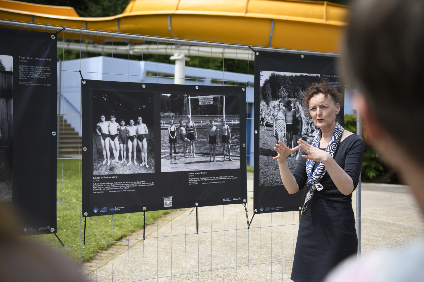 Jutta Haag führte durch die Ausstellung am 5.7.2024 (Bildquelle Stadtwerke Saarbrücken Bäder/Jennifer Weyland). - Stadtwerke Saarbrücken / Jennifer Weyland